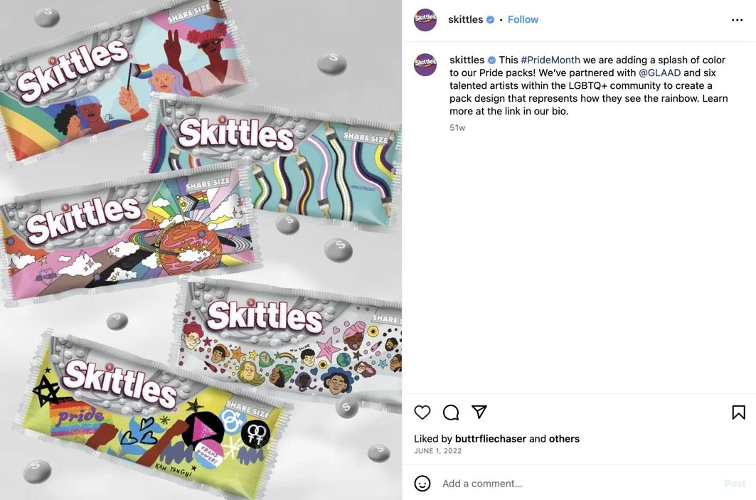 Skittles’ 2022 Pride Month post was well received because of the brand’s genuine support for the LGBTQ2+ community. Skittles partnered with artists within the community to create limited-edition packaging and donated a portion of the proceeds to supporting LGBT organizations. In doing so, Skittles demonstrated a commitment to diversity and inclusion that goes beyond “Rainbow Washing” and simply promoting their brand during Pride Month. Skittles’ efforts were a genuine and thoughtful gesture, helping to build stronger connections with customers who value social responsibility and advocacy.